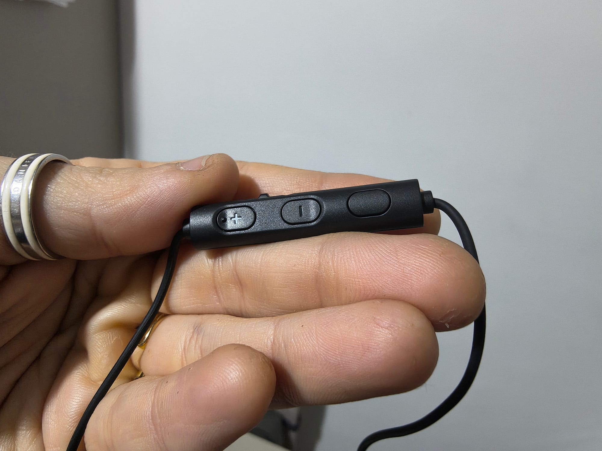 Il telecomando in linea, posizionato strategicamente lungo il cavo, ospita tre pulsanti ben distanziati e facili da individuare anche senza guardare I primi due tasti gestiscono il volume: uno aumenta e l’altro abbassa, così puoi regolare l’ascolto senza intervenire sul device. Il terzo è un comando multifunzione: una pressione avvia o mette in pausa, due pressioni passano al brano successivo, tre riportano a quello precedente.