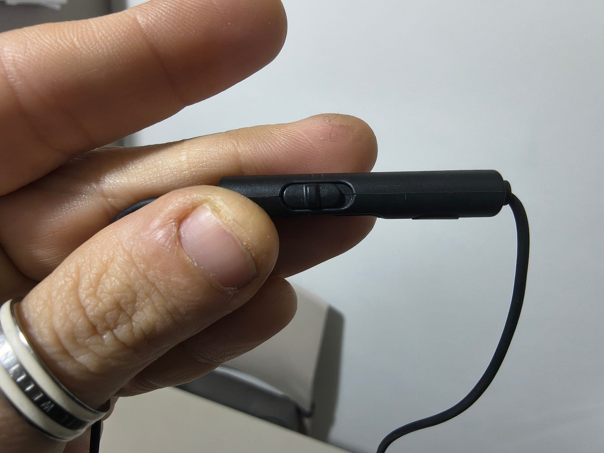 Particolarmente utile è l'interruttore scorrevole dedicato per accendere e spegnere il microfono. Questa soluzione elegante e intuitiva è fondamentale durante le riunioni video: quando desideri che gli altri partecipanti non ti sentano per un momento, basta scorrere l'interruttore verso il basso e il microfono si disattiva istantaneamente, senza alcuna necessità di toccare il PC o l'applicazione. Un ulteriore tocco del pulsante multifunzione risponde alle chiamate in arrivo, permettendoti di gestire completamente la comunicazione direttamente dal controllo in linea.